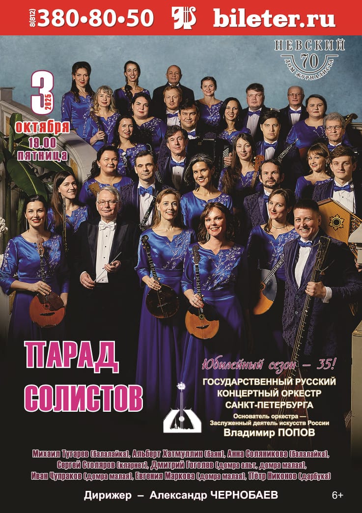 Концерт Государственного Русского концертного оркестра Санкт-Петербурга (основатель — Заслуженный деятель искусств России Владимир ПОПОВ).